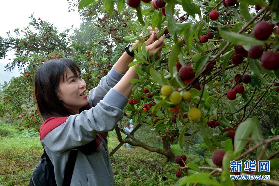 6月3日,一名游客在楊梅節(jié)上采摘楊梅。當(dāng)日,貴州省黔東南苗族侗族自治州榕江縣高文苗寨舉辦楊梅節(jié),吸引眾多游客參加“楊梅大王”評(píng)選、吃楊梅比賽、吹蘆笙、跳蘆笙舞等趣味活動(dòng)。新華社發(fā)(劉進(jìn)銀 攝) -