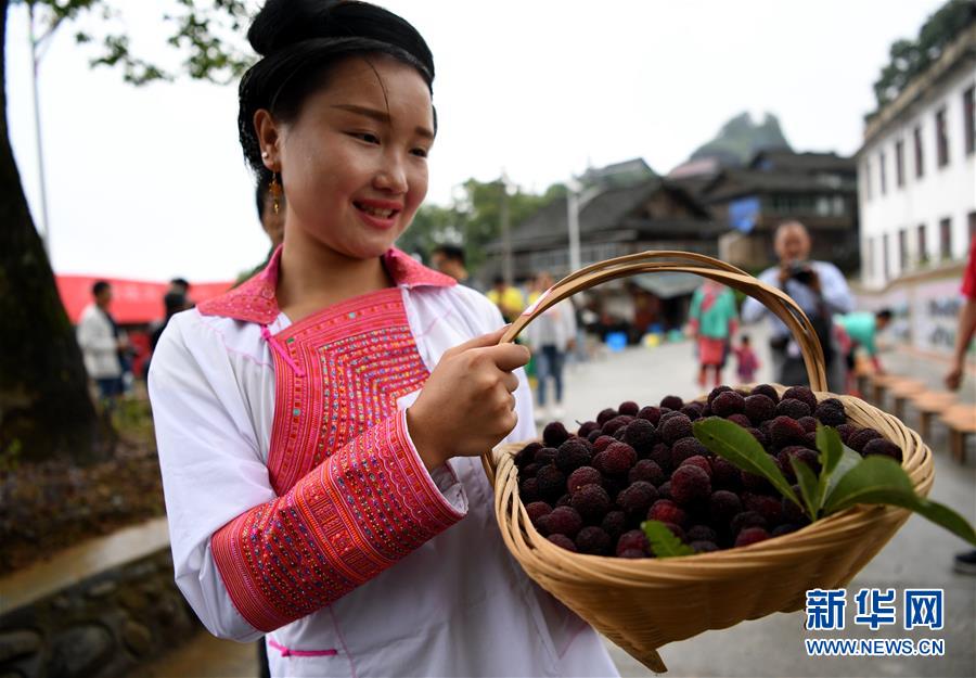 6月3日,一名苗族姑娘在楊梅節(jié)上展示楊梅。當(dāng)日,貴州省黔東南苗族侗族自治州榕江縣高文苗寨舉辦楊梅節(jié),吸引眾多游客參加“楊梅大王”評(píng)選、吃楊梅比賽、吹蘆笙、跳蘆笙舞等趣味活動(dòng)。新華社發(fā)(王炳真 攝) -