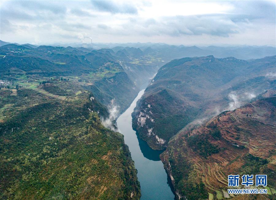 這是3月14日拍攝的鴨池河大峽谷風(fēng)光(無人機(jī)拍攝)。位于貴州省畢節(jié)市境內(nèi)的鴨池河大峽谷坡陡山高,碧綠的鴨池河在峽谷中奔流,呈現(xiàn)出一幅壯麗景觀。新華社記者 劉續(xù) 攝