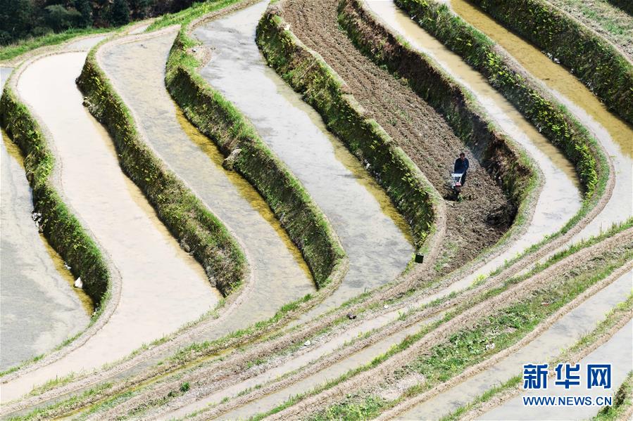 春耕時節(jié),貴州省黔東南苗族侗族自治州從江縣農(nóng)民搶抓農(nóng)時犁田耕地。近年來,適合山區(qū)梯田耕作的微耕機逐漸取代耕牛,成為黔東南山區(qū)農(nóng)民春耕的“新寵”。