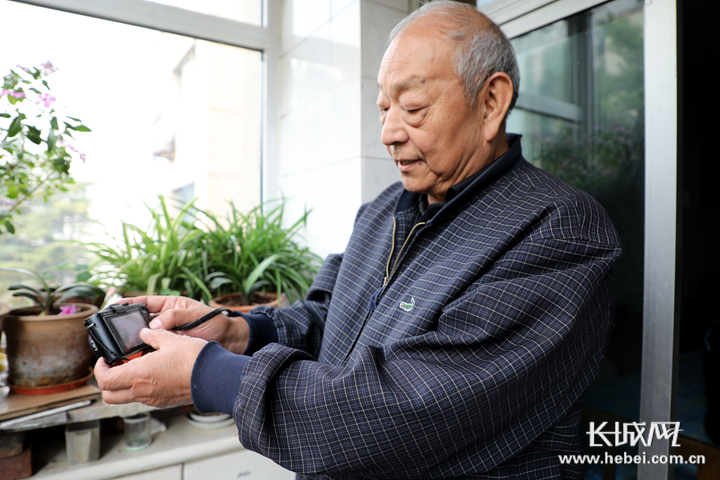 王汝春每天堅(jiān)持用相機(jī)記錄石家莊空氣質(zhì)量變化。記者 高琳哲 攝