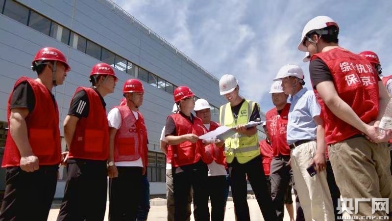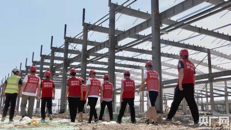 身穿紅馬甲的河北京車造車基地項目建設施工保障隊伍。