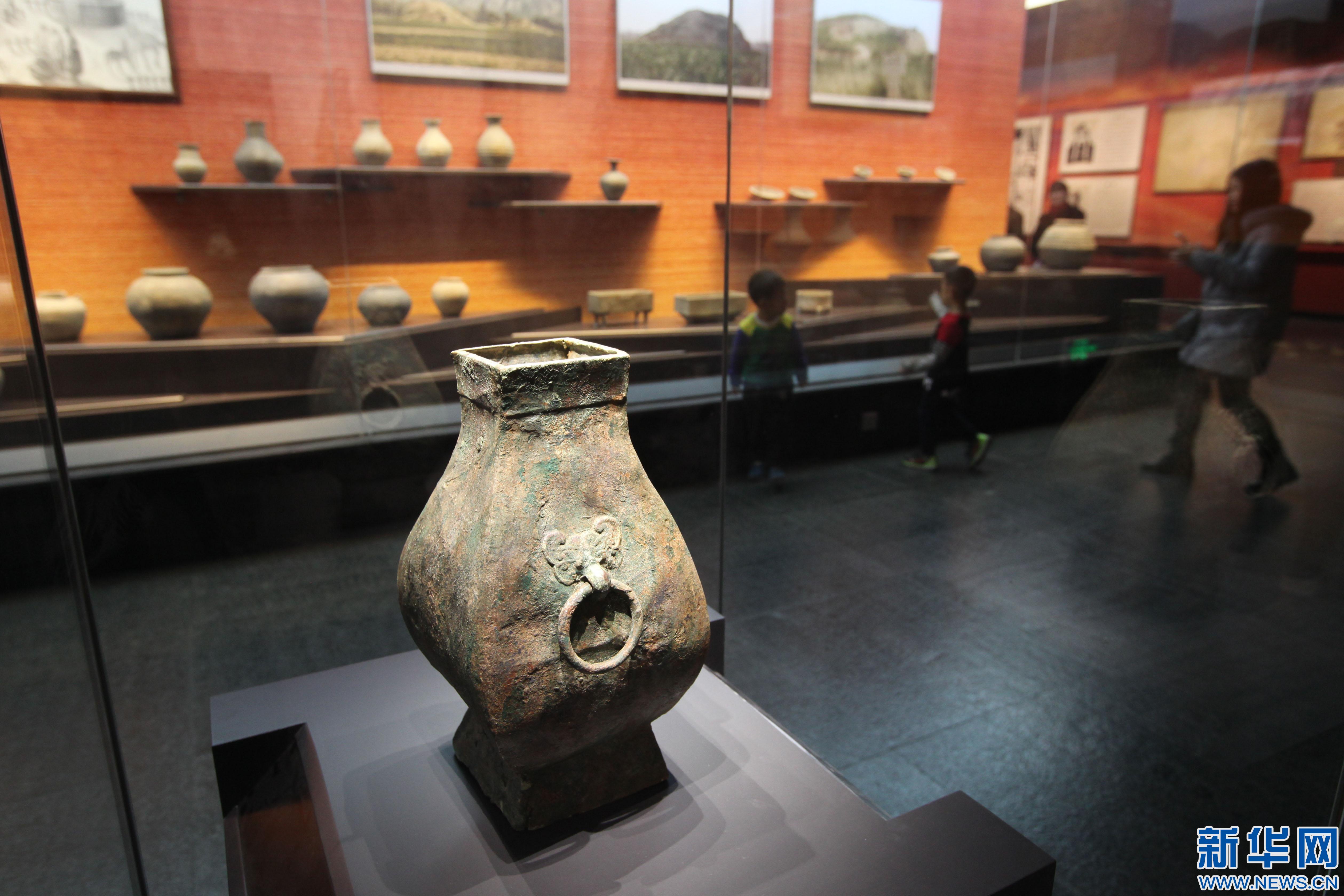 這是12月6日在河北蔚縣蔚州博物館拍攝的西漢獸雙耳青銅鈁
