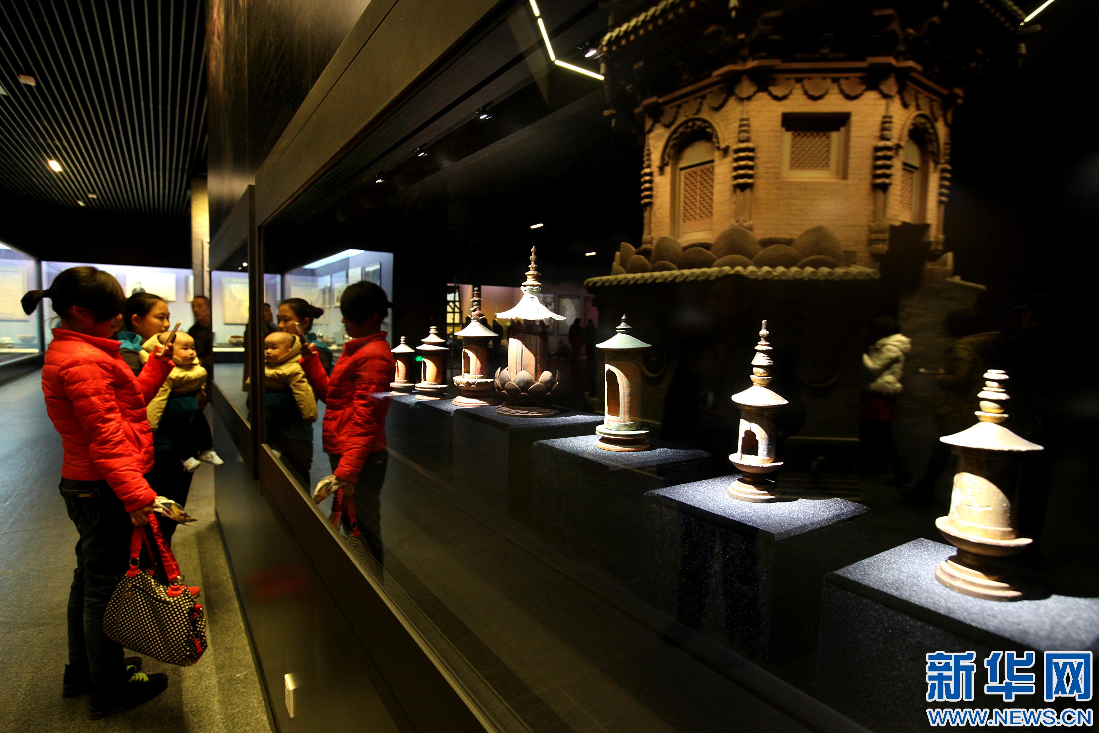 12月6日,觀眾在河北蔚縣蔚州博物館欣賞遼代彩繪木塔