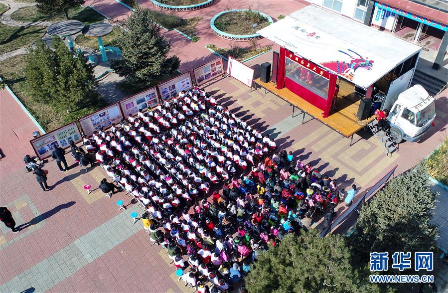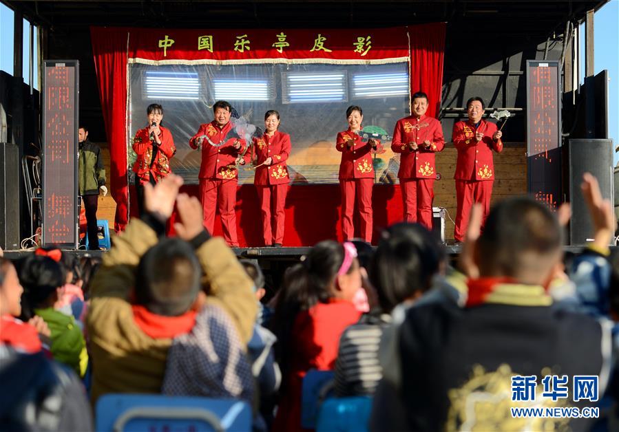 11月21日,河北省樂亭縣汀流河中心小學學生在文化大篷車前觀看樂亭皮影劇目表演。新華社記者 牟宇 攝 今年以來,河北省樂亭縣文化、教育部門啟動“文化大篷車校園傳非遺”活動,通過在城鄉(xiāng)中小學舉行非遺展演、非遺項目傳承人現(xiàn)場授課等方式,讓學生們接受傳統(tǒng)文化教育。 -