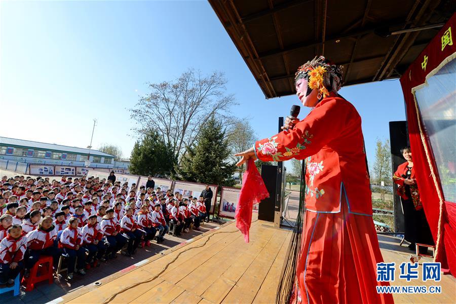 11月21日,評劇演員在河北省樂亭縣汀流河中心小學為學生們表演。新華社記者 牟宇 攝