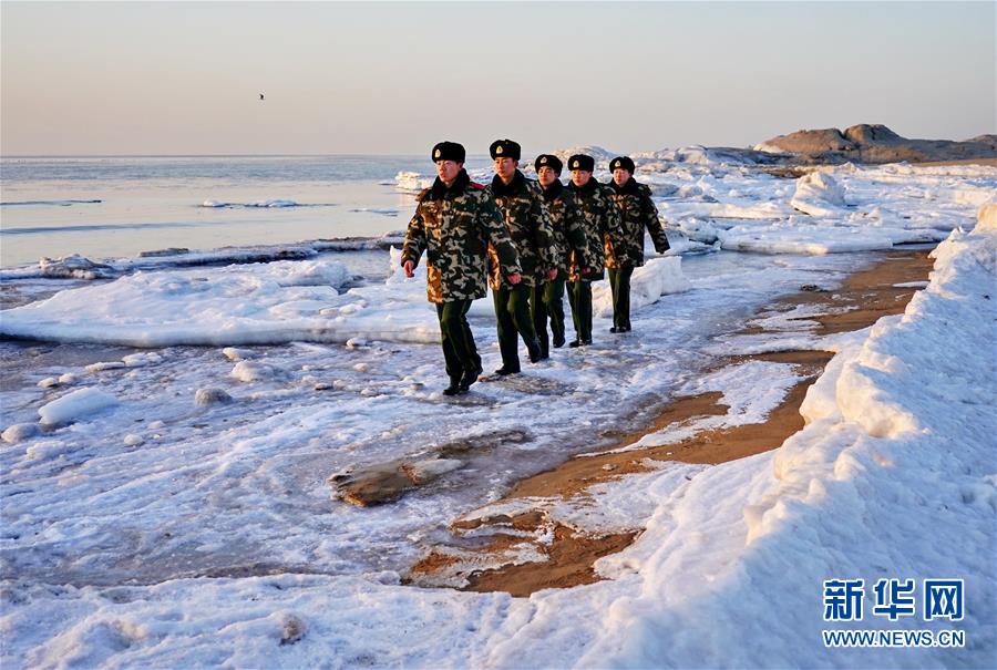 1月29日,河北省秦皇島邊防支隊北戴河邊防派出所官兵在海邊巡邏。新華社記者 楊世堯 攝