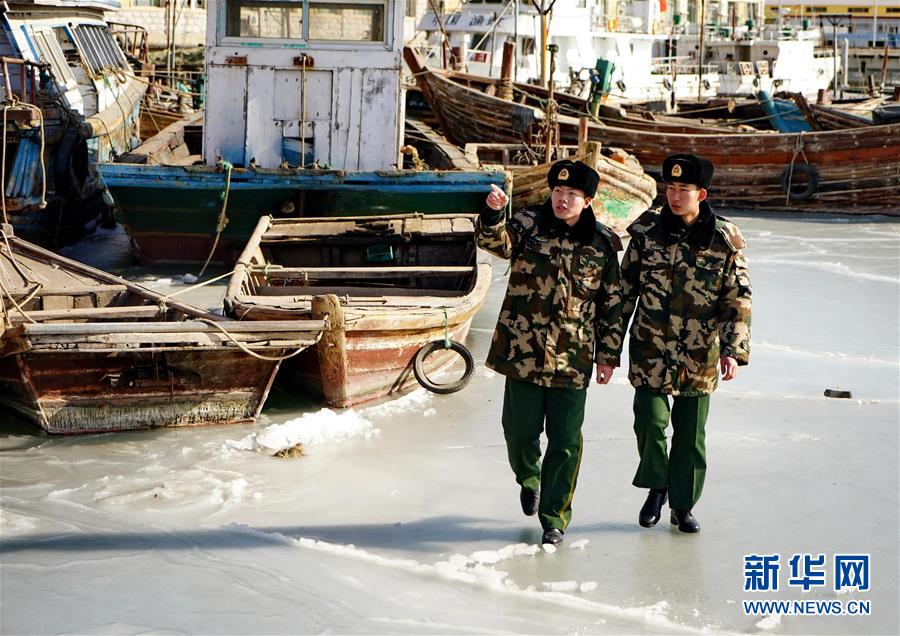 1月29日,河北省秦皇島邊防支隊北戴河邊防派出所官兵在轄區(qū)漁港碼頭巡邏。新華社記者 楊世堯 攝 -