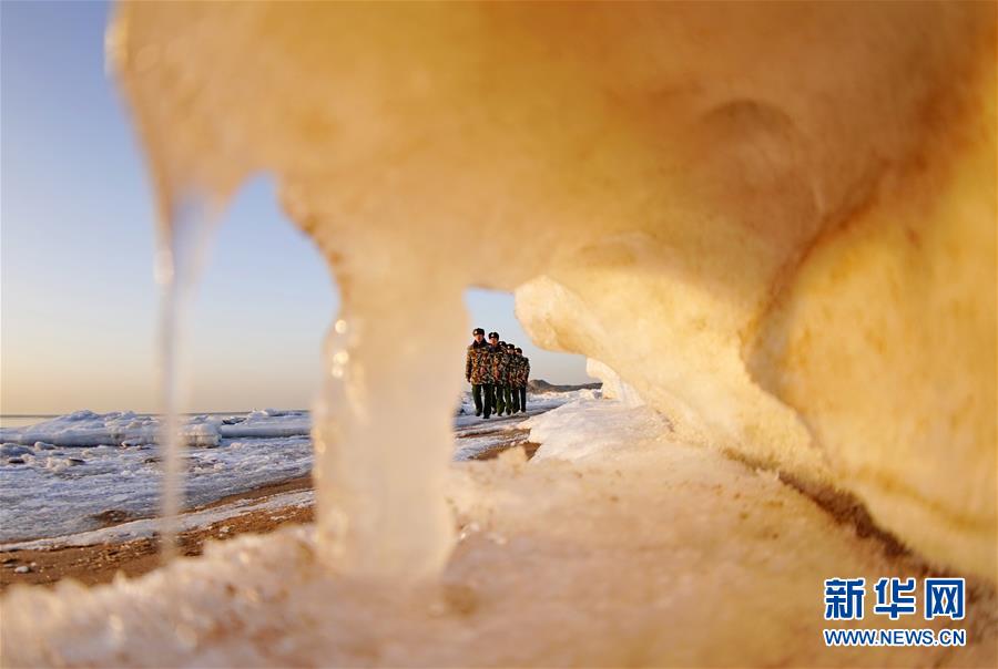 1月29日,河北省秦皇島邊防支隊北戴河邊防派出所官兵在海邊巡邏。新華社記者 楊世堯 攝 近日,受寒潮影響,河北省秦皇島近海區(qū)域出現(xiàn)持續(xù)冰情,秦皇島邊防支隊官兵針對漁港、碼頭等重點區(qū)域加強巡防,排查安全隱患,向漁船民宣傳安全防范知識,確保轄區(qū)群眾安全過冬。 -