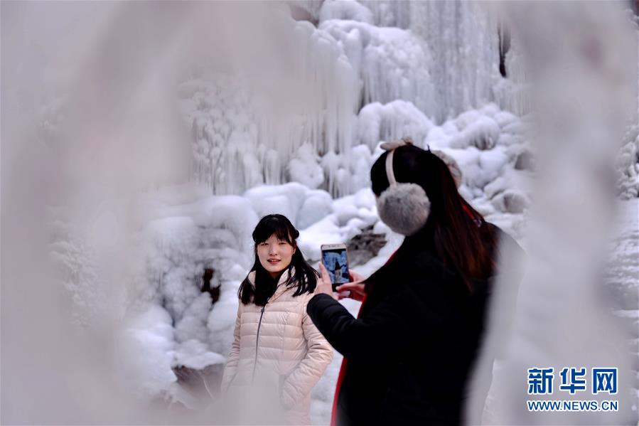 2月4日,游客在河北省邢臺市九龍峽冰瀑景區(qū)內拍照留念。當日是立春節(jié)氣,不少游客選擇來到位于河北省邢臺市的九龍峽景區(qū),在太行山深處欣賞即將消融的冰瀑美景。 新華社記者 牟宇 攝 -