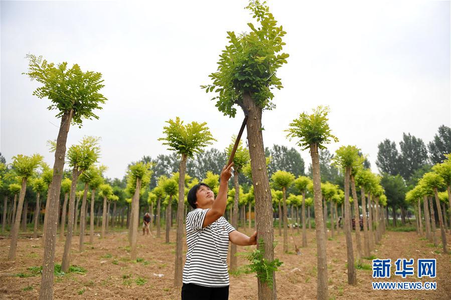 •      7月10日,河北省巨鹿縣種植戶在苗木基地內修剪苗木。新華社記者 牟宇 攝