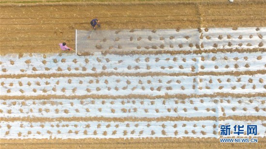 2月25日,山東省聊城市茌平縣賈寨鎮(zhèn)侯樓村的村民在田間給韭菜覆蓋薄膜(無(wú)人機(jī)拍攝)。 春日時(shí)節(jié),人們忙于生產(chǎn)勞動(dòng),為新一年的豐收和美好生活打下基礎(chǔ)。 新華社發(fā)(趙玉國(guó) 攝)