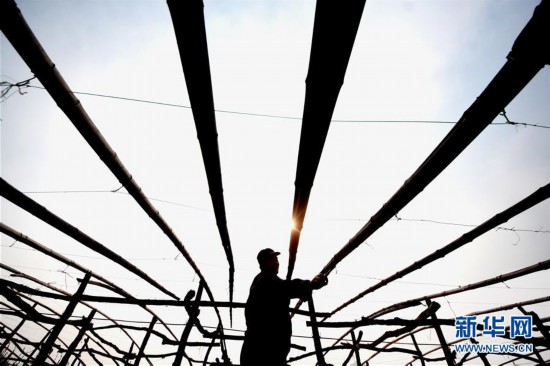 2月25日,山東省淄博市沂源縣歷山街道彩板峪村的農(nóng)民在搭建蔬菜大棚。 春日時(shí)節(jié),人們忙于生產(chǎn)勞動(dòng),為新一年的豐收和美好生活打下基礎(chǔ)。 新華社發(fā)(趙東山 攝)