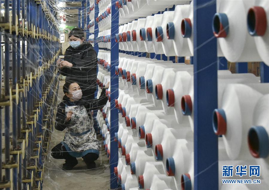2月27日,工人在河北省曲周縣一家紡織企業(yè)車(chē)間內(nèi)工作。