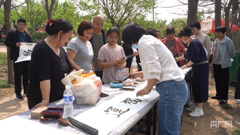 游客參與書畫展(央廣網(wǎng)發(fā) 劉月 攝)