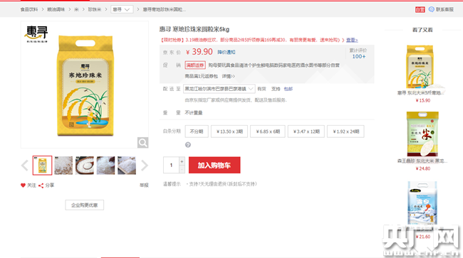 惠尋珍珠米銷售界面。網(wǎng)絡(luò)截圖
