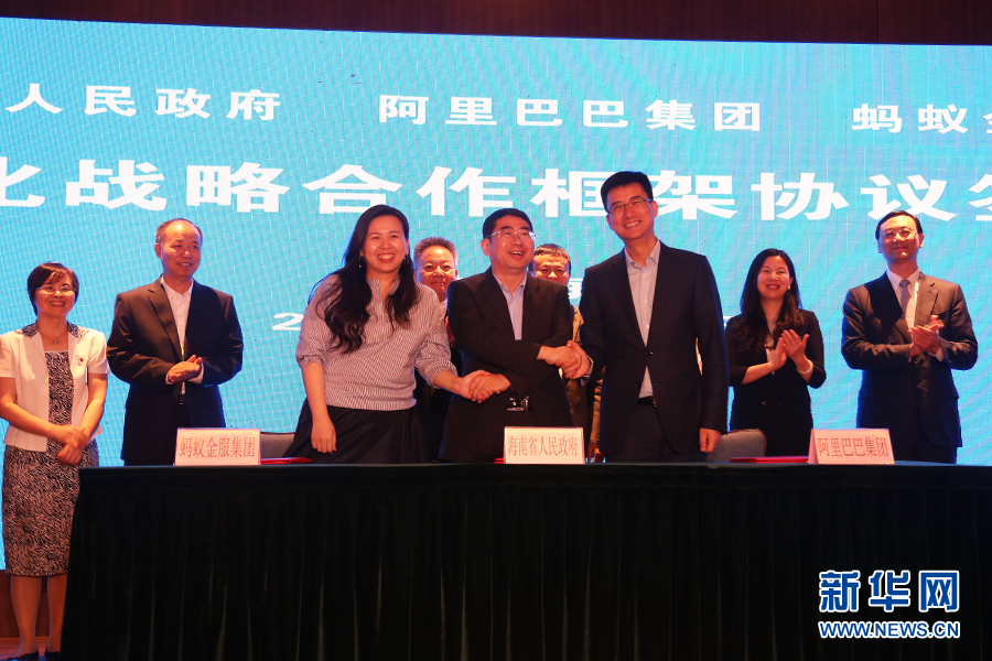新華網(wǎng)?4月27日電(張瑜 王雯君)4月27日,海南省人民政府、阿里巴巴集團(tuán)、螞蟻金服集團(tuán)全面深化戰(zhàn)略合作框架協(xié)議簽署儀式在?谂e行。雙方將圍繞經(jīng)濟(jì)發(fā)展、社會(huì)治理、民生服務(wù)三大領(lǐng)域深化合作,尤其是在數(shù)字經(jīng)濟(jì)、智慧服務(wù)業(yè)、信息智能島、電子商務(wù)等多方面開展重點(diǎn)合作。
