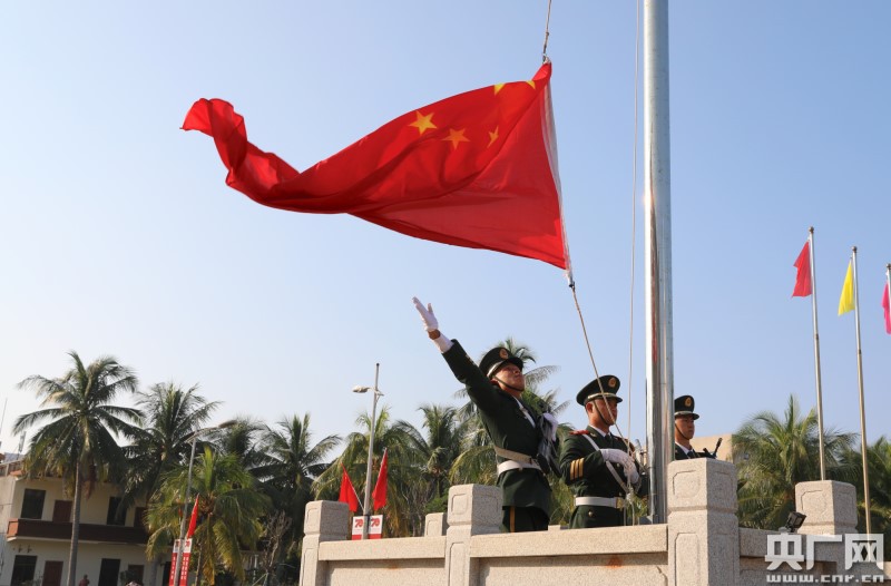 主持人:此時此刻,海南省三沙市政府所在地——永興島上,今天的升旗儀式即將舉行。我們來連線正在現(xiàn)場采訪的央廣記者吳媚苗。