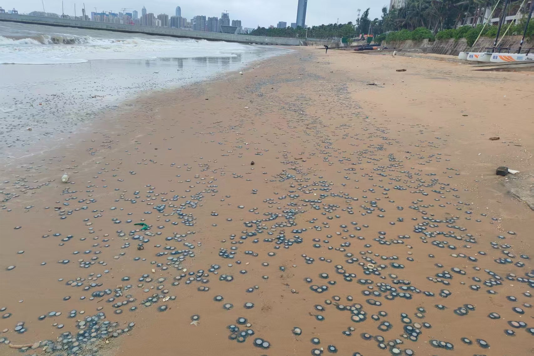海口西海岸出現(xiàn)大量銀幣水母 專家:有毒,應(yīng)避免主動(dòng)觸碰!