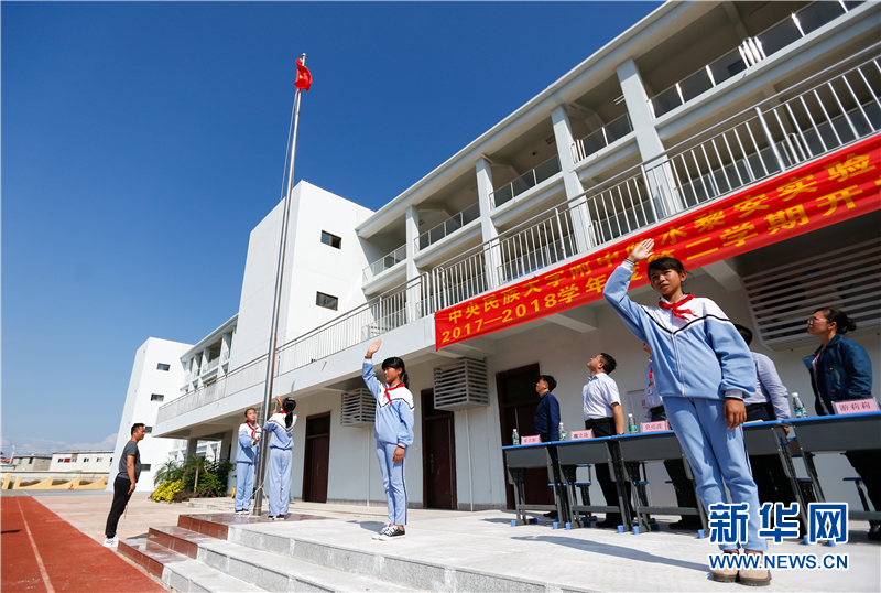 中央民大附中陵水黎安實(shí)驗(yàn)小學(xué)開(kāi)學(xué)典禮現(xiàn)場(chǎng)。新華網(wǎng)發(fā) 當(dāng)天,中央民大附中陵水黎安實(shí)驗(yàn)小學(xué)(以下簡(jiǎn)稱“黎安實(shí)驗(yàn)小學(xué)”)正式開(kāi)學(xué),包括楊克錦在內(nèi)的黎安片區(qū)1101名學(xué)生進(jìn)入到這所新學(xué)校就讀,他們將在這里享受到更加優(yōu)質(zhì)的教學(xué)硬件設(shè)施和師資力量。 -