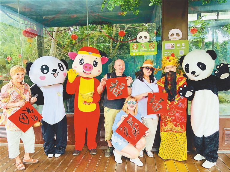 二月十日,在海南熱帶野生動植物園,六十名烏克蘭游客參加該園策劃的中國年體驗活動。 海南日報記者 張茂 通訊員 劉思躍 攝