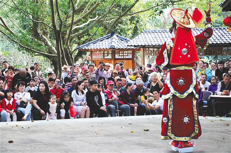 2月5日,市民游客在?诨鹕娇诘刭|(zhì)公園觀看瓊劇表演。海南日報記者 張茂 通訊員 熊麗 攝