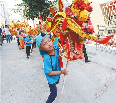 二月十九日,儋州市中和鎮(zhèn)的小朋友參與舞龍鬧元宵。 海南日?qǐng)?bào)記者 陳元才 通訊員 朱鼎甲 攝