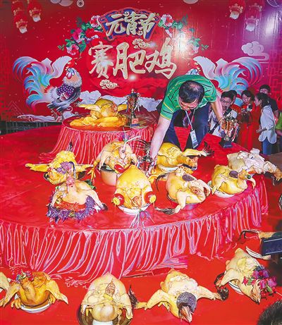 賽肥雞由明代祭祀城隍爺?shù)募蓝Y演變而來(lái)。在瓊海市博鰲鎮(zhèn)樂(lè)城村,每年正月十五、十六,家家戶戶將圓鼓鼓的肥雞擺放在家門(mén)口。在百姓欣賞品評(píng)的同時(shí),村里德高望重的鄉(xiāng)賢則會(huì)挨家挨戶為參賽的肥雞評(píng)分,推選出一年一度的奪魁肥雞。誰(shuí)家的雞最肥,說(shuō)明誰(shuí)家最會(huì)養(yǎng)雞,同時(shí)也是最勤勞的象征。(丁平)