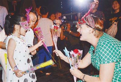 2月19日,?谑懈堑貐^(qū)舉行盛大的換花節(jié)活動(dòng),來(lái)自波蘭的寒梅跟小朋友互換鮮花,表達(dá)祝福。 海南日?qǐng)?bào)記者 張茂 攝
