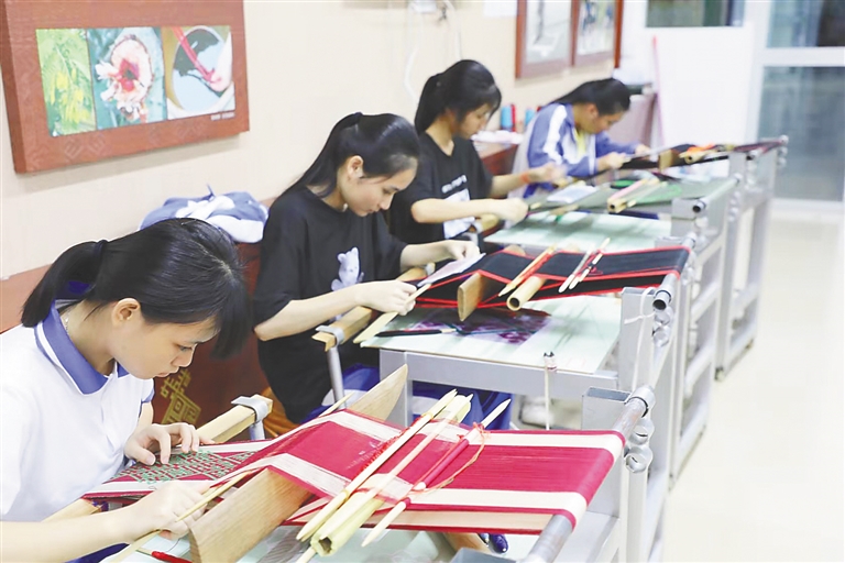 據(jù)悉,自2012年起,白沙非遺傳習(xí)館、陳列館先后建成投用。此后又陸續(xù)在白沙多所中小學(xué)校建成20個(gè)黎錦培訓(xùn)基地以及3所黎錦傳習(xí)所。非遺文化進(jìn)校園活動(dòng)也于2012年正式啟動(dòng),目前已累計(jì)培訓(xùn)學(xué)生達(dá)4000余人,白沙黎錦非物質(zhì)文化遺產(chǎn)不斷注入新的血液和能量。