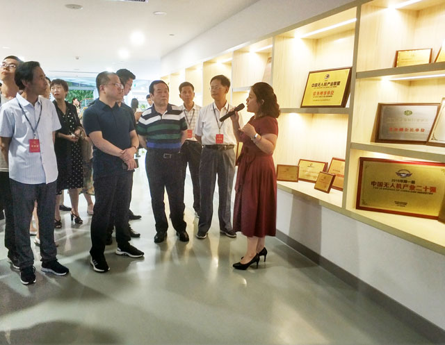 隨后,代表參觀了天鷹兄弟無人機(jī)展廳、企業(yè)文化墻等,并觀看了天鷹兄弟植保無人機(jī)作業(yè)視頻。現(xiàn)場負(fù)責(zé)人張思玲為大家詳細(xì)介紹了天鷹兄弟自成立以來發(fā)展歷程以及獲得的多項(xiàng)榮譽(yù),代表們對(duì)天鷹兄弟企業(yè)創(chuàng)新創(chuàng)業(yè)發(fā)展成果以及在農(nóng)業(yè)植保無人機(jī)領(lǐng)域做出的突出成績給予高度的評(píng)價(jià)。