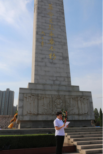 隨著集中學(xué)習(xí)的結(jié)束,鄭州新區(qū)支行黨支部來(lái)到鄭州烈士陵園,瞻仰革命烈士紀(jì)念碑,緬懷為革命勝利獻(xiàn)出寶貴生命的英雄兒女。在紀(jì)念碑前,鄭州新區(qū)支行黨支部向革命先烈敬獻(xiàn)花籃并三鞠躬。黨支部委員、副行長(zhǎng)王健同志代表黨支部在紀(jì)念碑前致詞,緬懷革命先烈,告慰革命英靈。告誡全體黨員不能忘紅色政權(quán)是怎么來(lái)的、新中國(guó)是怎么來(lái)的、今天的幸福生活是怎么來(lái)的,要高舉中國(guó)特色社會(huì)主義偉大旗幟,堅(jiān)定走中國(guó)特色社會(huì)主義道路,把先輩們開(kāi)創(chuàng)的事業(yè)不斷推向前進(jìn)。
