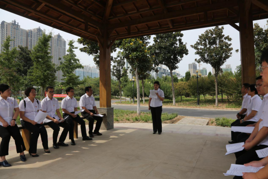 參觀結(jié)束后,鄭州新區(qū)支行黨支部來(lái)到中原英烈館西側(cè)的廊亭下,召開(kāi)了“緬懷革命先烈、提振攻堅(jiān)精神”主題黨日專題座談會(huì)。由黨員代表結(jié)合主題教育開(kāi)展以來(lái)的學(xué)習(xí)情況,及主題黨日活動(dòng),談?wù)勛约旱男牡皿w會(huì)。同志們都認(rèn)為主題教育開(kāi)展以來(lái),對(duì)自身的學(xué)習(xí)起到了很好的促進(jìn)推動(dòng)作用,尤其是主題黨日活動(dòng),通過(guò)緬懷革命先烈的英雄事跡,滌除污垢,純化自己的初心,強(qiáng)化自己的使命擔(dān)當(dāng)。