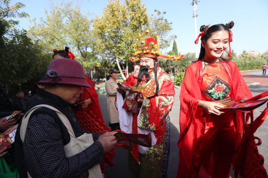 “咱老家了貨啥都有可排場!上網(wǎng)你知道去哪最得勁不?” 昨天(11.10)下午,不少開封市民在汴京公園門前的廣場上,圍觀了一場特殊的河南傳統(tǒng)曲藝閃秀。