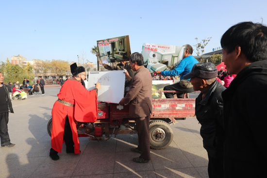 同樣屬于非物質(zhì)文化遺產(chǎn)的還有河南開封清明上河園包公稱秤的扮演者王惠老師。王師傅因為一次偶然的機會在淘寶上買到了一副便宜又好用的老花鏡,由此愛上了網(wǎng)購。天貓雙11預(yù)熱開始,他在網(wǎng)上看到不少適合父老鄉(xiāng)親的河南寶物,尤其是阿里拍賣上上線了一大批失眠價格五折起拍的學(xué)區(qū)房。為了幫助還不太會網(wǎng)購的開封市民,學(xué)會上網(wǎng)技巧,從11月1號開始,包師傅就帶著清明上河園的豫劇表演團隊,在汴京公園門前的廣場上免費為父老鄉(xiāng)親們表演。并將河南傳統(tǒng)文化中,適合走街創(chuàng)想的喜劇表演,包括:肚皮戲法、散財童子送福等進行重新編排,用河南方言俚語巧妙編輯天貓雙11的優(yōu)惠和使用攻略。