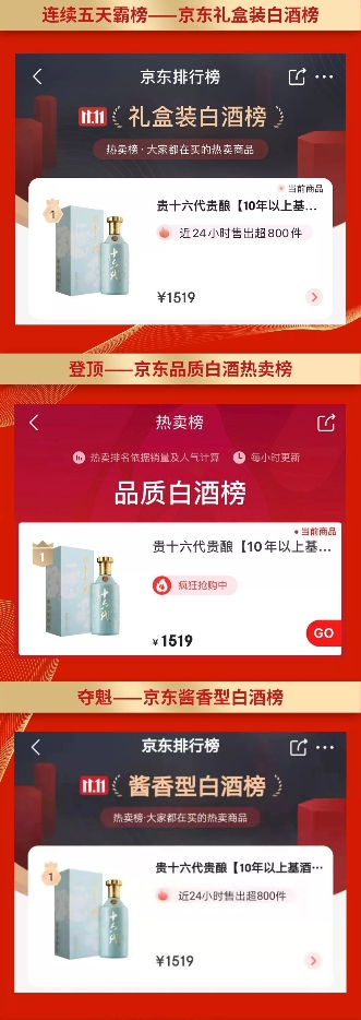 除貴十六代·天青外,貴十六代系列產品在京東全球好物節(jié)活動期間,均有不俗表現(xiàn)。