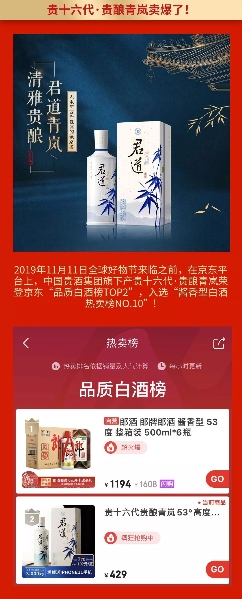 當閃耀國際舞臺的中國貴酒集團及旗下品牌貴十六代與京東2019年雙11全球好物節(jié)相遇,所產生的超級戰(zhàn)績無疑成為了今年中國白酒界標志性事件。