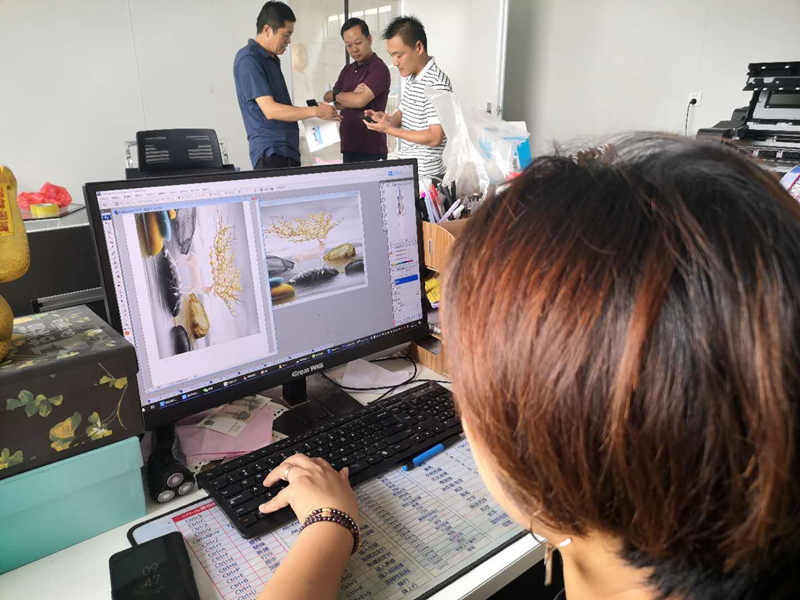圖庫(kù)里選畫(huà),電腦手動(dòng)制作,自動(dòng)噴繪打印......半小時(shí)不到,一幅辦公室墻上常見(jiàn)的裝飾畫(huà)出來(lái)了。再利索把它裝進(jìn)畫(huà)框,它就可以順著物流發(fā)到客戶手里了。