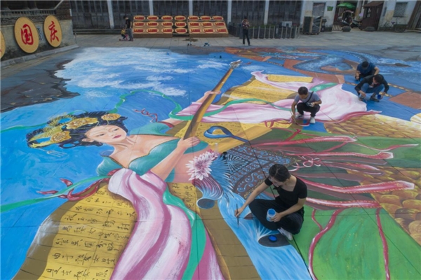婺源縣唯一一家5A景區(qū)---江灣,給所有游客帶來(lái)前所未有的文化之旅。以往來(lái)婺源的游客,只有聽(tīng)導(dǎo)游講解婺源的由來(lái),上古傳說(shuō)婺女?dāng)仳札埖墓适。婺源江灣景區(qū)請(qǐng)了10位藝術(shù)家,用了一個(gè)月的時(shí)間,在廣場(chǎng)上創(chuàng)作了巨幅3D立體畫“婺女傳說(shuō)”,國(guó)慶首次亮相在大家面前。婺源江灣廣場(chǎng),400平方巨幅3D立體畫“婺女傳說(shuō)”創(chuàng)全國(guó)景區(qū)之最。