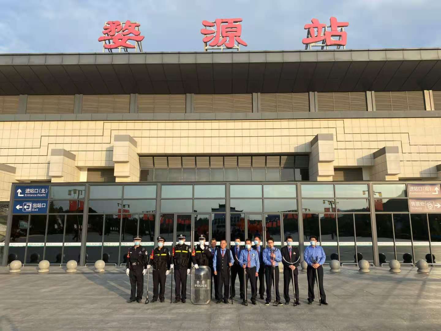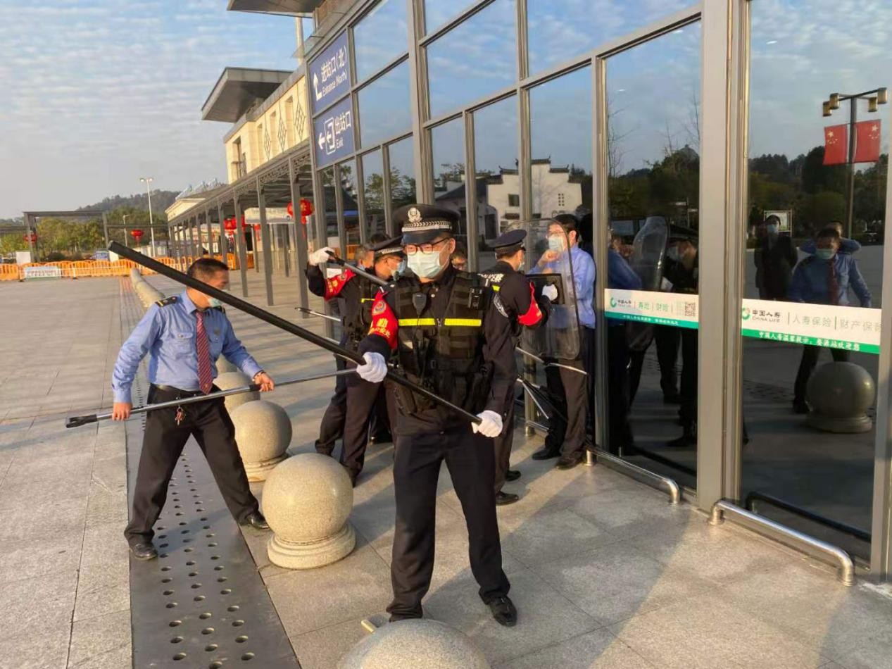 為確;疖囌緟^(qū)域絕對(duì)安全,進(jìn)一步提升民警和鐵路職工現(xiàn)場(chǎng)處置應(yīng)急實(shí)戰(zhàn)能力。18日上午,婺源車站派出所聯(lián)合婺源站、站前管委會(huì)等人員在婺源站舉行了模擬警情應(yīng)急處突演練。