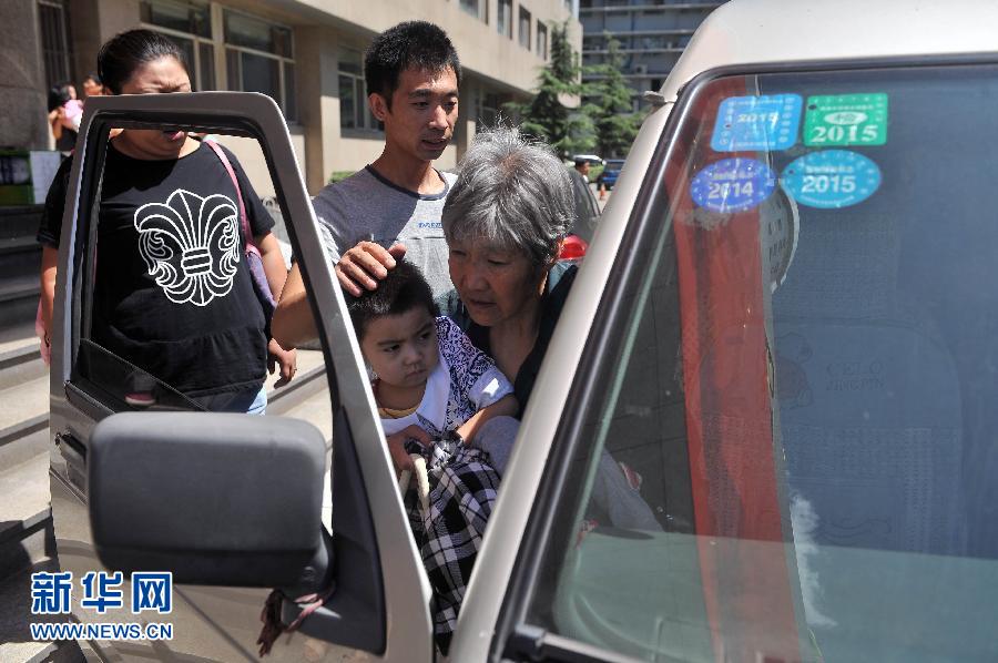 8月25日,在太原市山西省兒童醫(yī)院,小可然在父親、奶奶的陪伴下坐上回家的汽車。