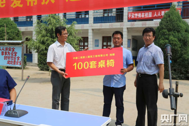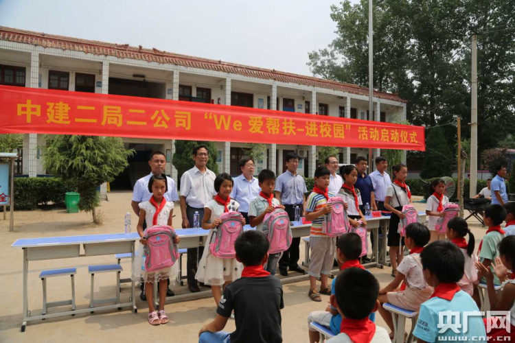 一場由中建二局第二建筑工程有限公司(下面簡稱中建二局二公司)與蘭考縣教體局聯(lián)合開展的“we愛幫扶—進(jìn)校園”活動啟動儀式在十點整在此拉開序幕。中建二局二公司的員工們親自將2000冊課外讀物、100套課桌椅、300多個書包文具送到了孩子們的手中,并幫助他們安裝好乒乓球桌,耐心指導(dǎo)糾正孩子們的橫直拍握法,企業(yè)負(fù)責(zé)人鄭重接過由公司會同當(dāng)?shù)卣畬嵉刈咴L調(diào)查最終確定的貧困生“一對一”幫扶名單,并裝進(jìn)特別準(zhǔn)備的檔案袋,并現(xiàn)場封存好。