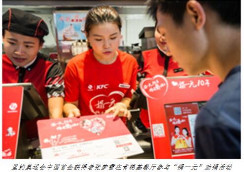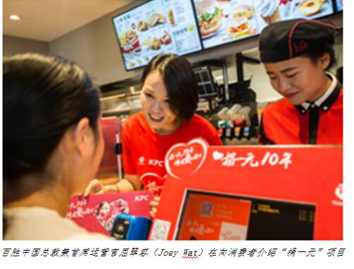 與此同時,旨在為貧困地區(qū)兒童的健康成長奉獻(xiàn)愛心的“捐一元”活動,已經(jīng)于7月8日至23日在百勝中國旗下遍及全國的肯德基、必勝客、塔可貝爾和東方既白餐廳展開。