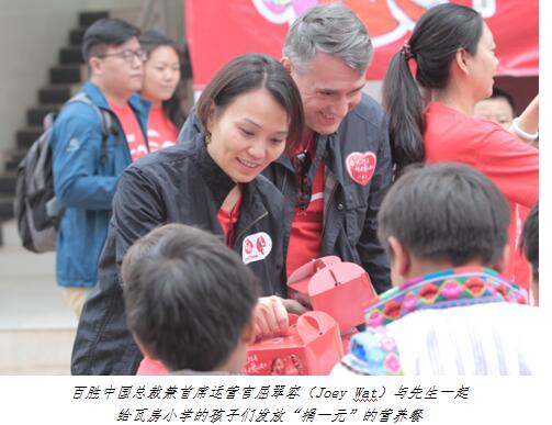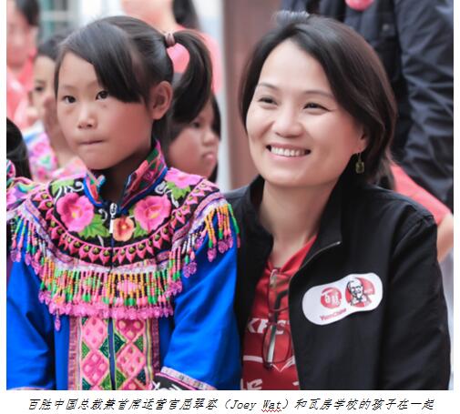 “他們都是百勝中國牽掛的孩子,這次終于見面了。”百勝中國總裁兼首席運(yùn)營官屈翠容(Joey Wat)在公益項目“捐一元”成功開展的第十個年頭,不僅在肯德基餐廳與里約奧運(yùn)會中國首金獲得者張夢雪一同捐款、號召消費者參與捐一元,還同她的先生和孩子共赴這場大山里的約定。