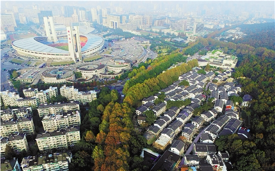 經(jīng)過一年半的整治改造,緊鄰黃龍商圈的白沙泉華麗轉(zhuǎn)身。圖為白沙泉航拍照。