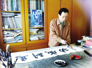 馬馳先生在創(chuàng)作“馬到成功”書法作品。