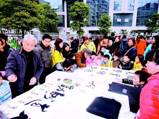 央廣網(wǎng)河南分網(wǎng)消息 據(jù)湖北日?qǐng)?bào)報(bào)道:7日,武漢市東亭二小師生,與湖北省老年大學(xué)書畫聯(lián)誼會(huì)20余位書畫家及企業(yè)界愛心人士,共同啟動(dòng)“學(xué)雷鋒活動(dòng)月”儀式。此次活動(dòng)旨在“書畫獻(xiàn)愛心,贈(zèng)書助教育”;顒(dòng)現(xiàn)場(chǎng),書畫家們?yōu)閷W(xué)校文化建設(shè)無償創(chuàng)作40余幅書畫作品,企業(yè)界人士贈(zèng)書近1000冊(cè)。(通訊員 張湘文 攝)