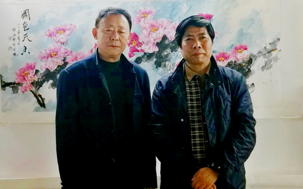 王蔚波與齊海軍在其畫展現(xiàn)場