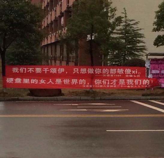 當(dāng)然雷人的標(biāo)語(yǔ)也不少,比如“今天你不陪她過(guò)女生節(jié),明天別人就帶她過(guò)婦女節(jié)!”、“硬盤(pán)里的女人是世界的,你們是我們的!”等雖然也反映了高校生活某些方面,但思想境界并不高。