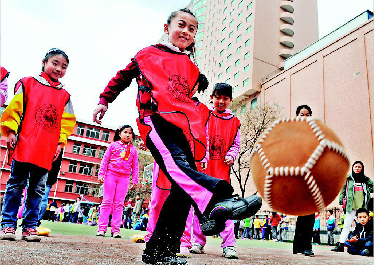 蹴鞠大戰(zhàn)在小學(xué)校園上演 文化魅力不可擋